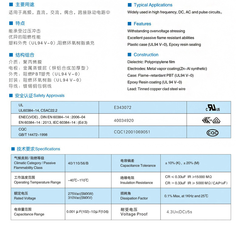 X2阻容降压安规电容器